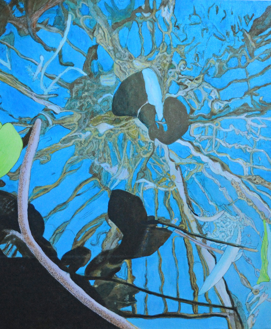 Painting of lillies looking through water by Jacqueline Rolls